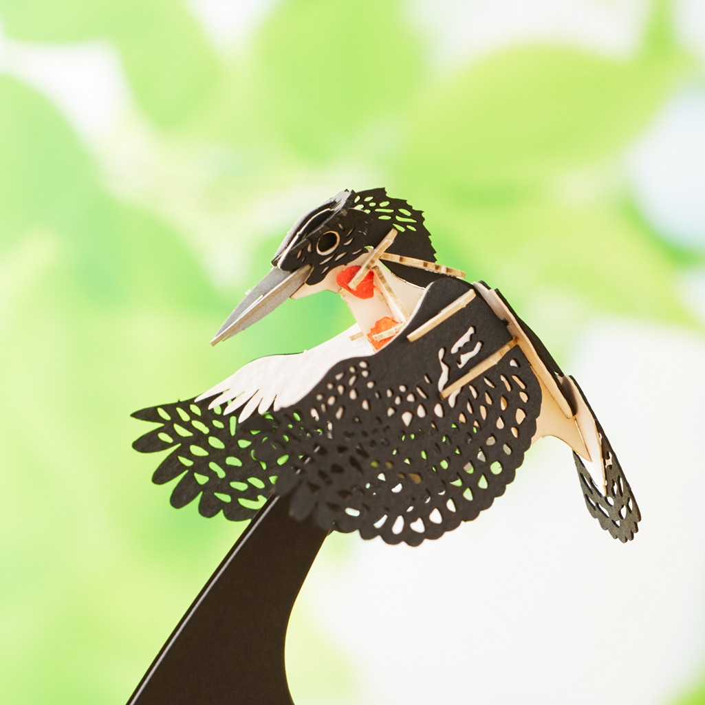白黒の羽を広げ、堂々と川辺を見下ろすヤマセミは、冒険者の象徴です。